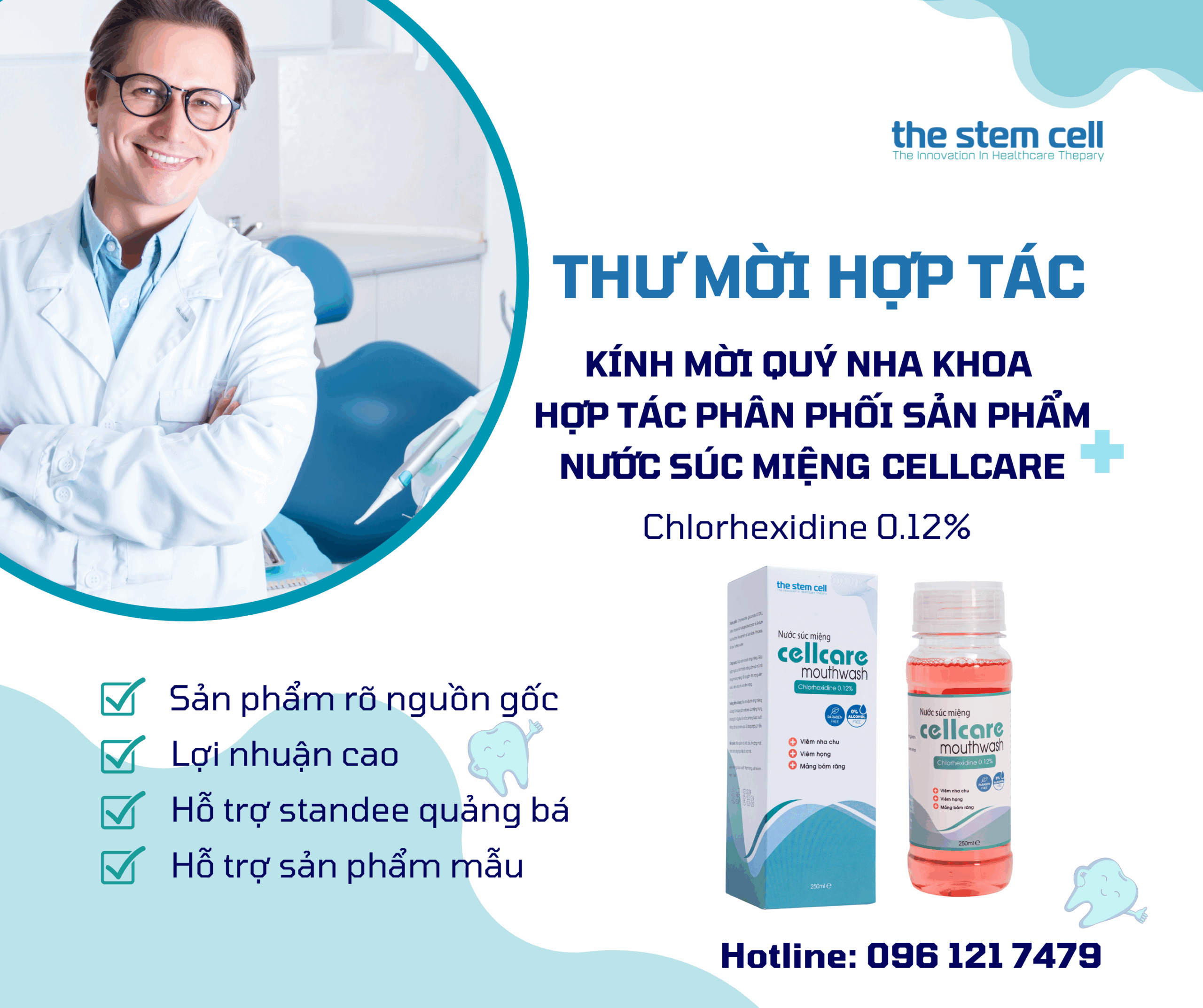 Với mạng lưới phân phối toàn quốc và đội ngũ chuyên môn giàu kinh nghiệm, Cellcare cam kết đồng hành cùng nha sĩ và phòng khám: